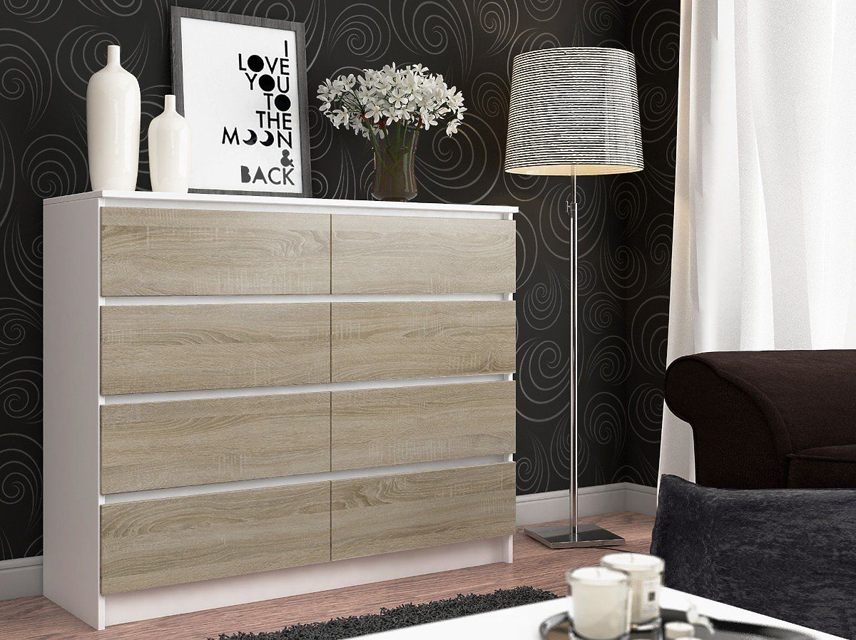 Komoda s 8 zásuvkami z laminovanej dosky, biela/dub Sonoma. .. viac