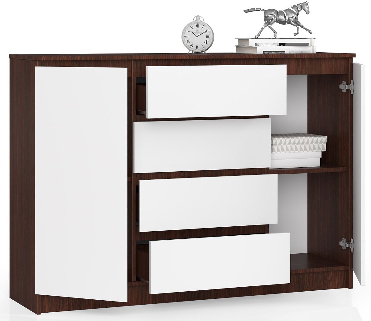 Komoda K140 s 2 dverami a 4 zásuvkami vo farbe wenge a bielej. .. viac