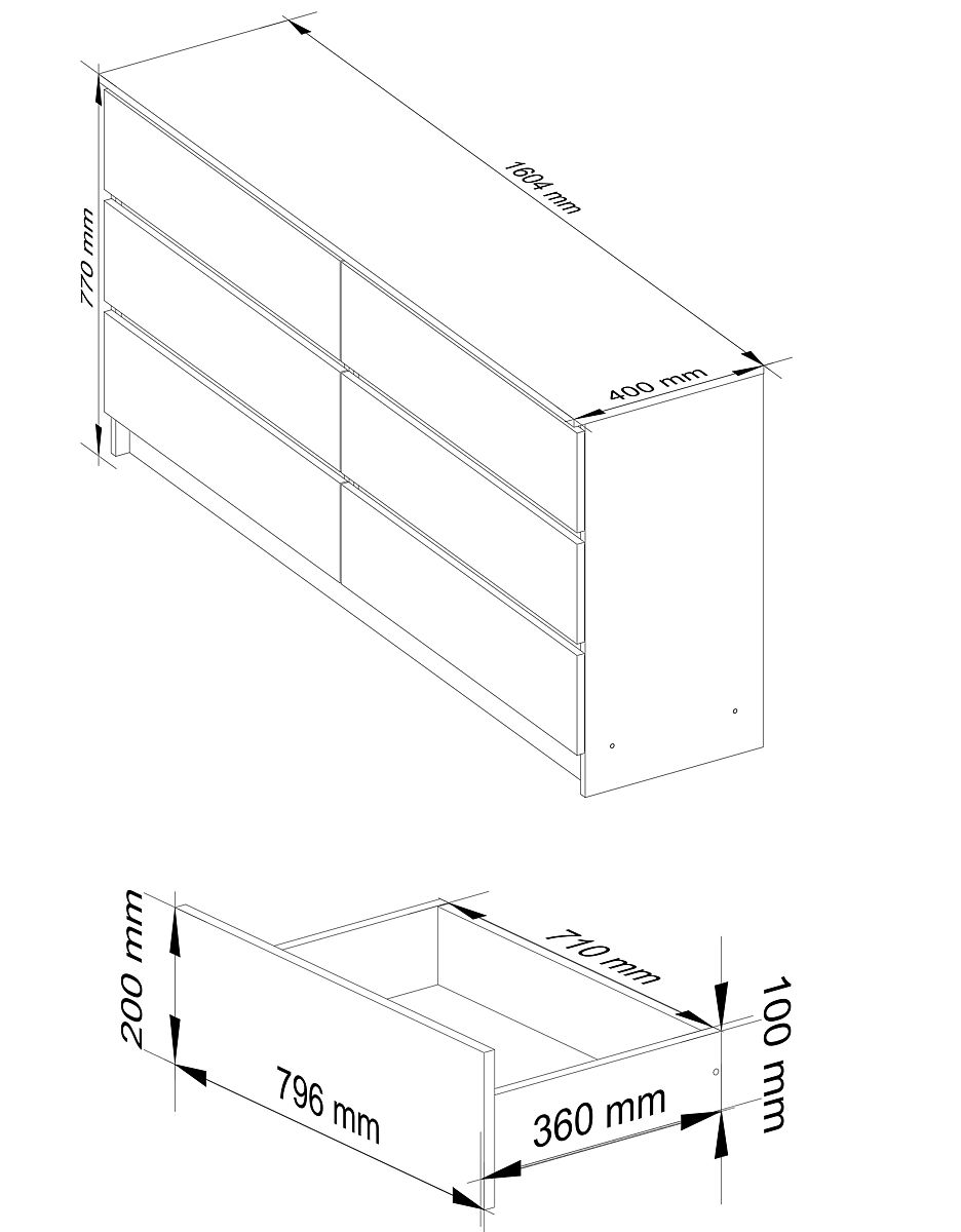 Komoda so šiestimi zásuvkami je osvedčené riešenie, ktoré sa hodí do obývacích izieb, spální, hosťovských izieb, detských a mládežníckych izieb, jedální, predsiení i kancelárskych priestorov. Priestranné zásuvky, jednoduchý mechanizmus a ľahké čistenie sú nepochybné výhody tejto ponuky. Pozornosť si zaslúži aj zaujímavá farebnosť - jelša.
