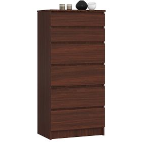 Veľmi vysoká komoda navrhnutá v krásnej farbe wenge sa skladá zo šiestich zásuviek. Hore sú umiestnené dve užšie, zatiaľ čo štyri zostávajúce sú rovnakej veľkosti. Nábytok sa skvele hodí predovšetkým do kancelárskych priestorov, kde sa uchováva veľké množstvo dokumentov, ale nájde využitie aj v obytných priestoroch.