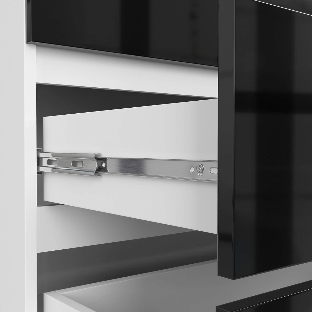 - Zásuvky sa pohybujú na kovových guľôčkových pojazdoch