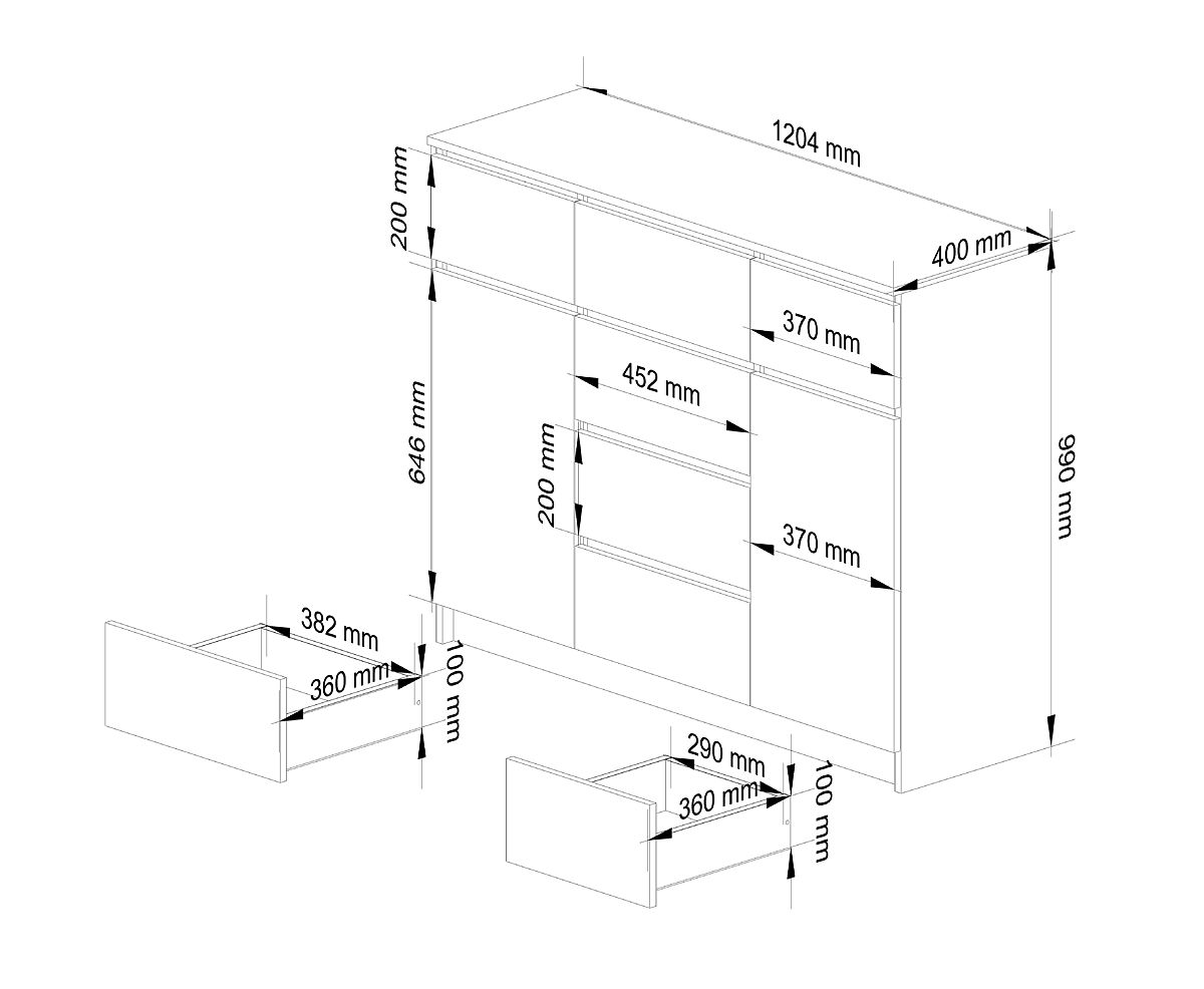 - Komoda vyrobená z vysoko kvalitnej laminovanej dosky 16 mm odolnej proti oderu
