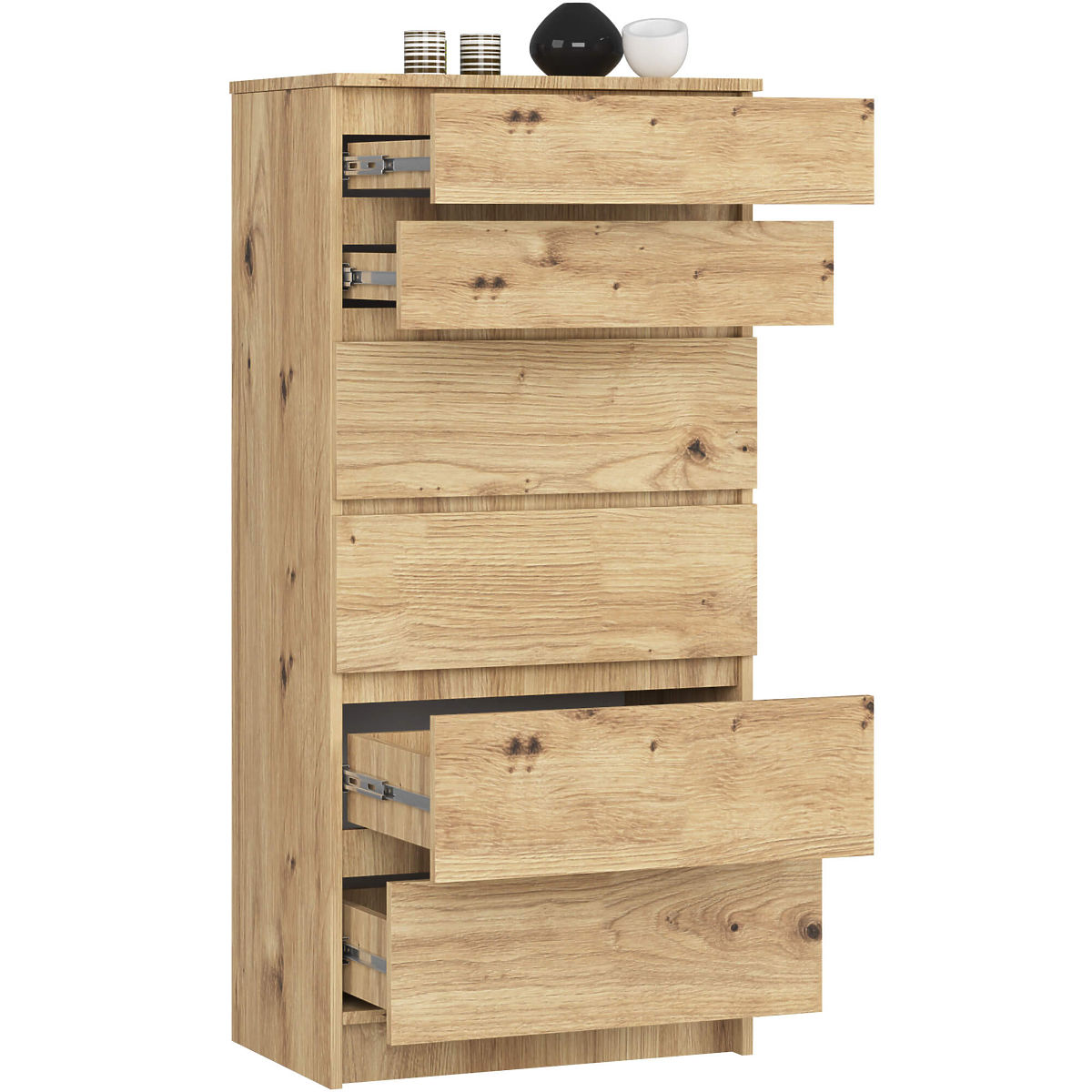 KOMODA K60 6 ZÁSUVIEK Vyrobená z 16mm laminovanej dosky odolnej proti oderu.