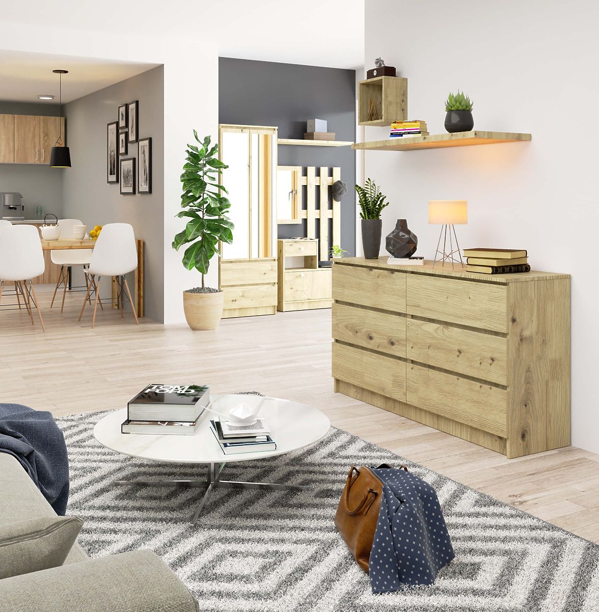 Komoda s 6 zásuvkami z laminovanej dosky Dub Artisan. .. viac