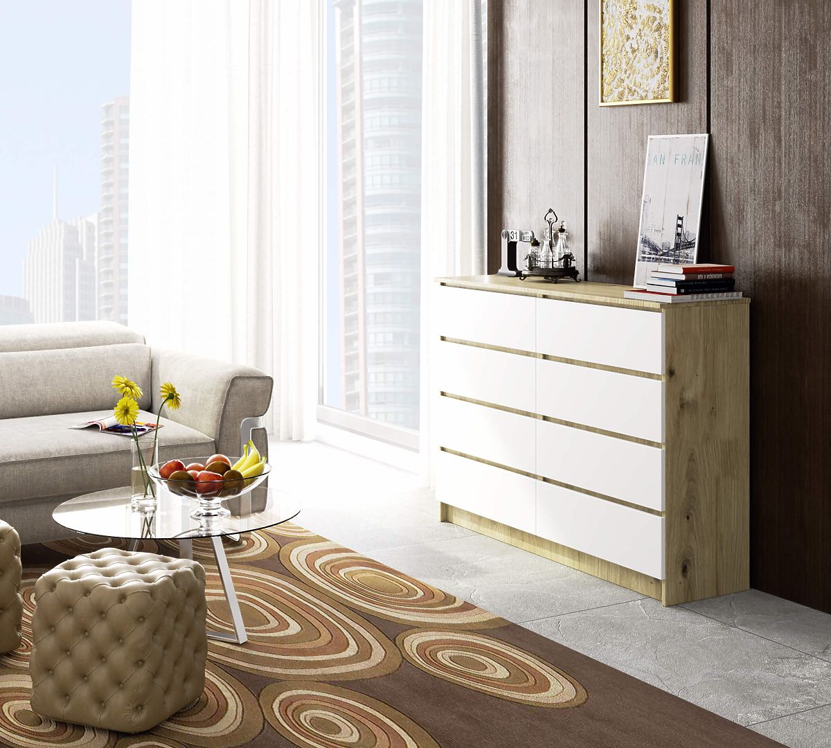Komoda s 8 zásuvkami v prevedení Dub Artisan a Biela. .. viac