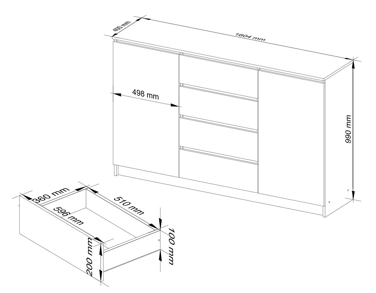 - Komoda vyrobená z vysoko kvalitnej laminovanej dosky 16mm odolnej proti oderu, výrobca kronospan