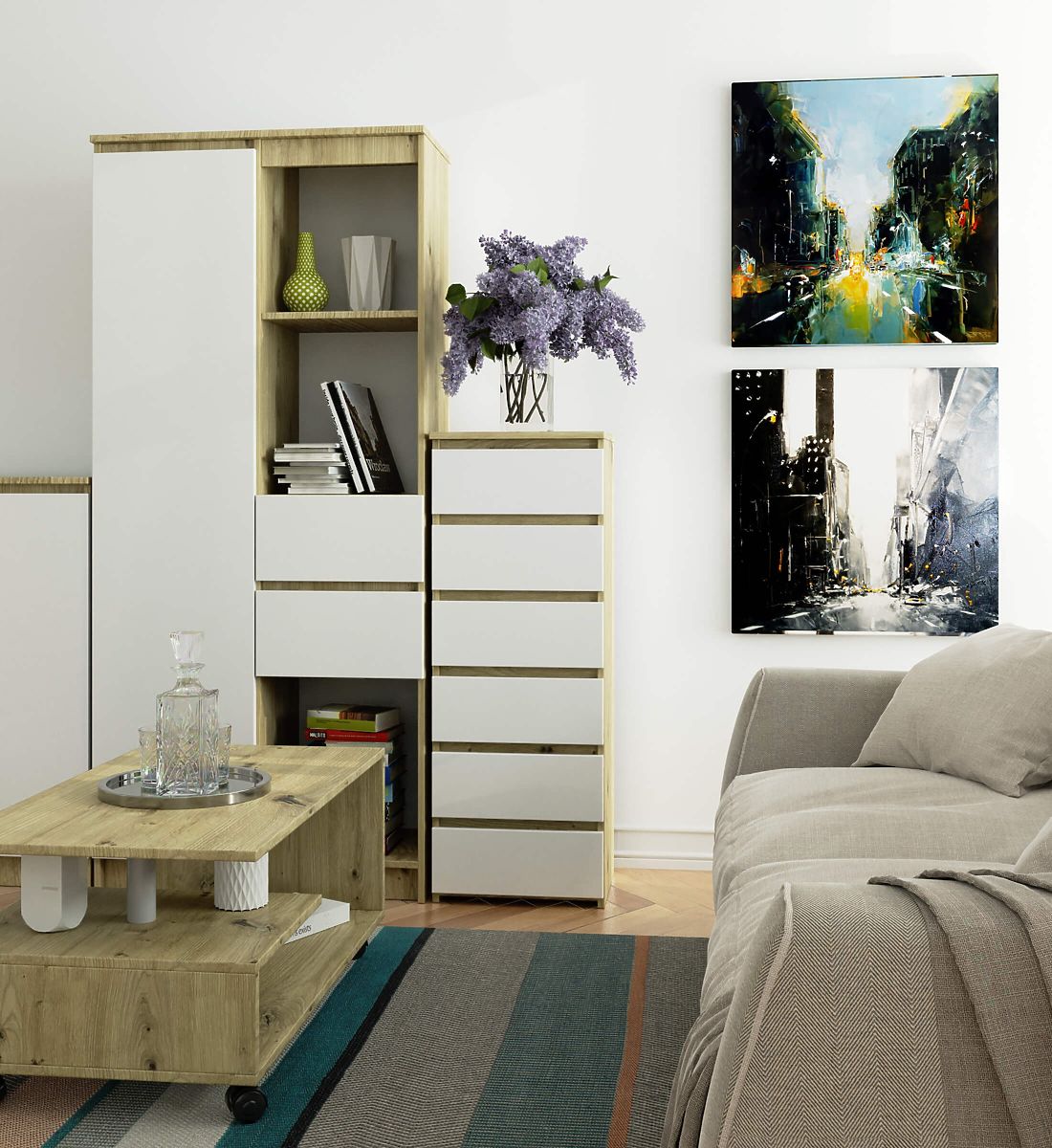 Komoda CL6 s 6 zásuvkami v dub artisan a bielej farbe. .. viac