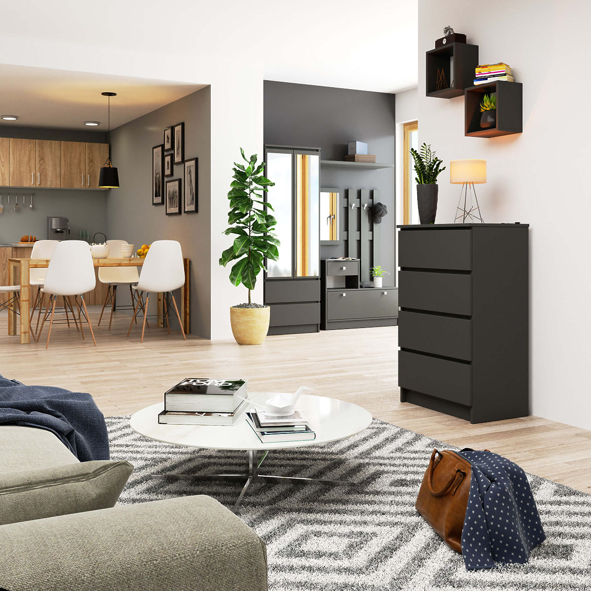 Komoda s 4 zásuvkami v grafitovo šedej farbe. .. viac