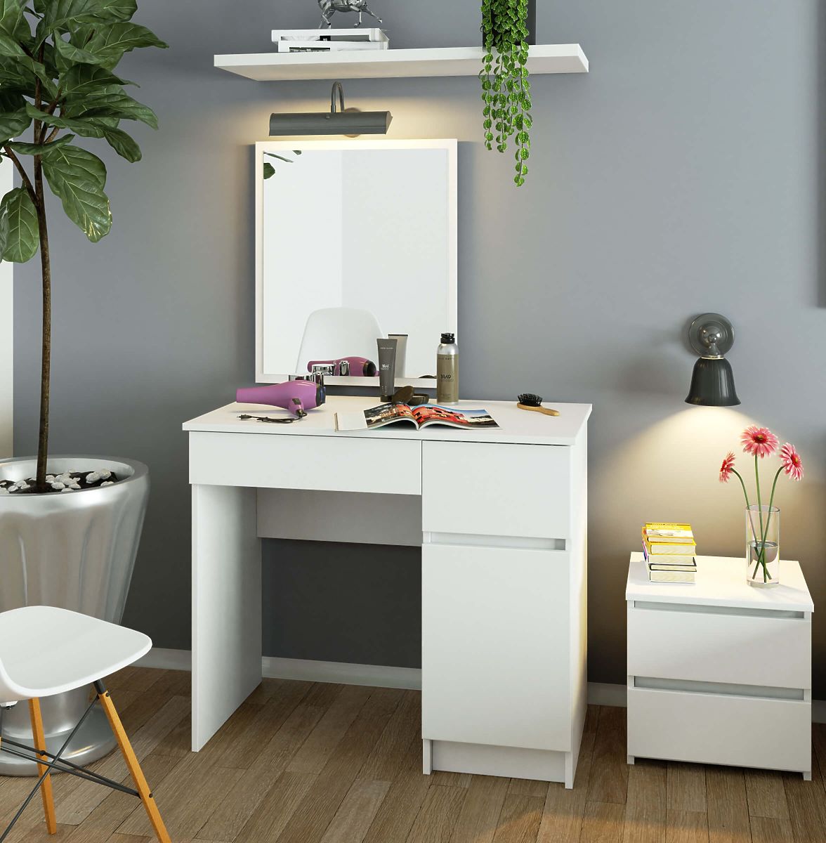 Kompaktná verzia toaletného stolíka pre ženy, ktoré chcú mať každé ráno možnosť rýchleho líčenia. Riešenie určené do spálne a nielen tam. Rozmery toaletného stolíka sa skvele hodia aj do kozmetických salónov.