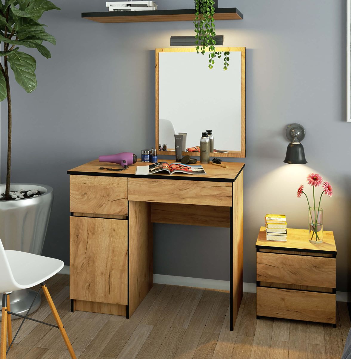 Kompaktná verzia toaletky pre ženy, ktoré chcú mať ráno možnosť rýchleho líčenia. Riešenie určené do spálne a nielen tam. Rozmery toaletky sú ideálne aj pre kozmetické salóny.