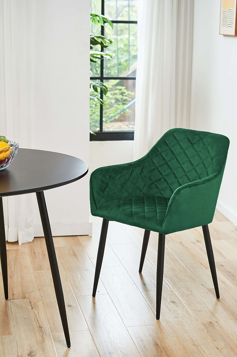 Prešívaná stolička do jedálne a obývacej izby vyrobená z materiálu typu velúr. Stolička s podrúčkami.