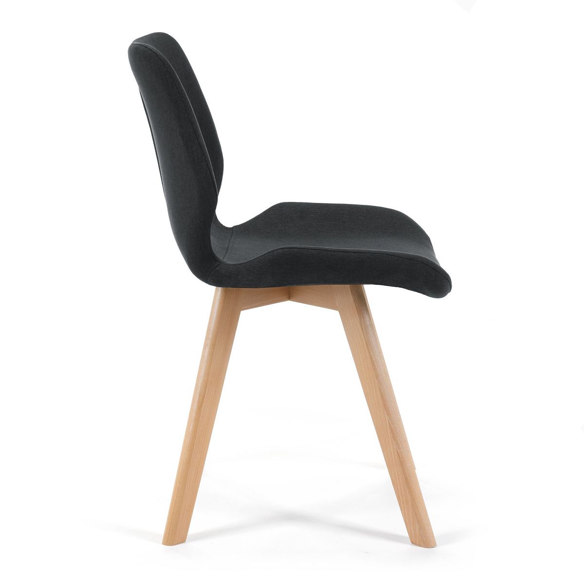 Stolička v škandinávskom štýle s čiernym látkovým čalúnením a drevenými nohami. .. viac