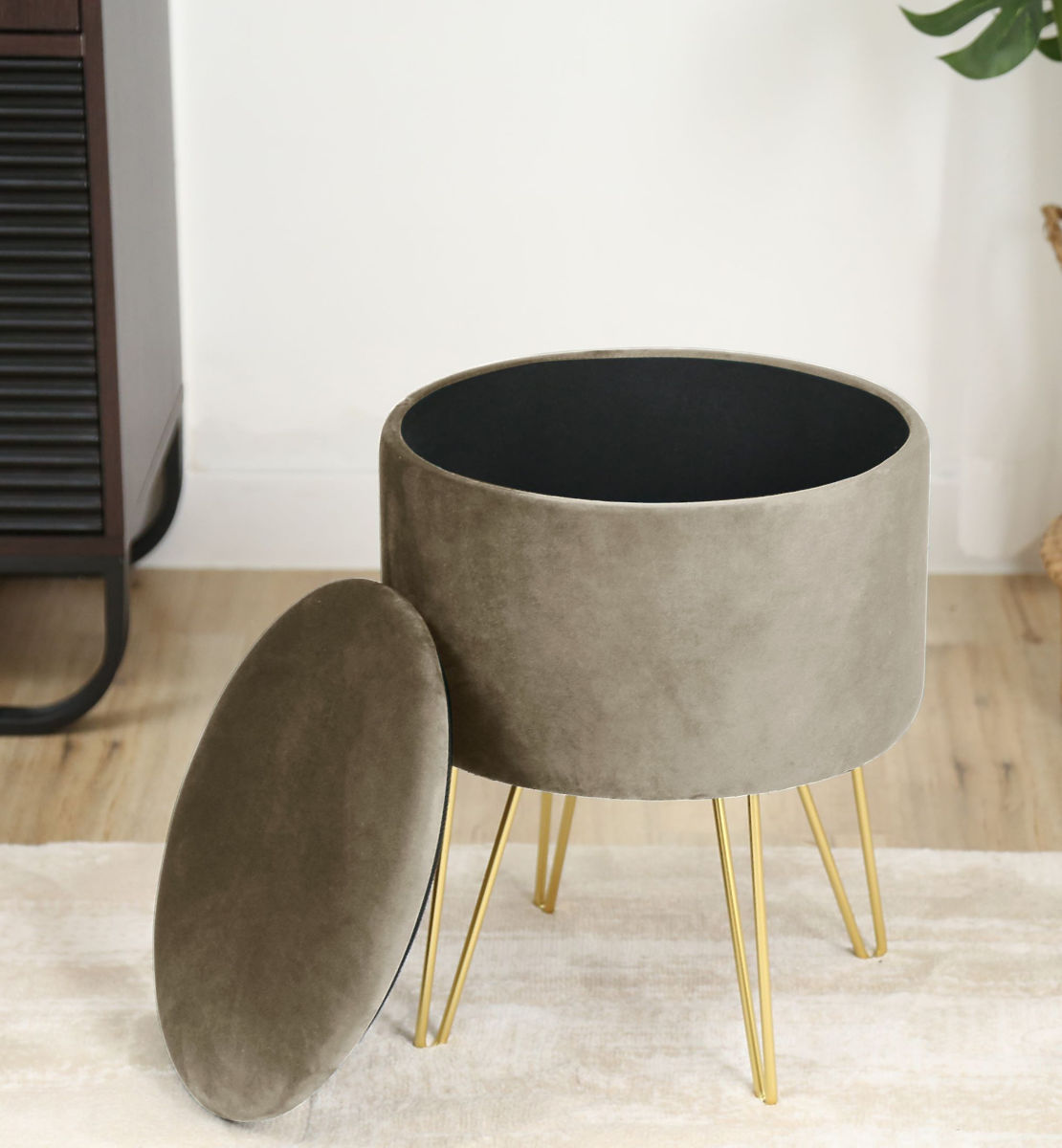 Podnožka alebo pufa je skvelým doplnkom do obývacej izby alebo spálne. Vďaka nej si unavené nohy po celodennom chodení môžu oddýchnuť, a ak je pufa vyrobená z mäkkého velúru, len to umocňuje príjemné pocity z odpočinku. Moderný vzhľad dopĺňajú kovové nohy natreté na zlatú farbu, ktorá je tento rok taká módna. Otváracie veko poskytuje prístup k úložnému priestoru, kam možno uložiť predmety nepotrebné na každodenné použitie.Špecifikácie:
