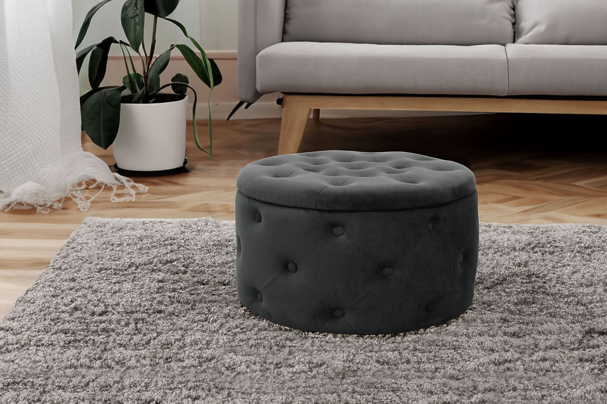Podnožka alebo puf je skvelým doplnkom do obývacej izby alebo spálne. Vďaka nemu si unavené nohy po celom dni chôdze môžu oddýchnuť, a ak je puf vyrobený z mäkkého velúru, len to umocňuje príjemné pocity z odpočinku. Moderný vzhľad dopĺňajú prešívanie, ktoré dodávajú elegantný štýl. Otváracie veko poskytuje prístup k úložnému priestoru, kam môžeme uložiť predmety nepotrebné na každodenné použitie.Špecifikácie: