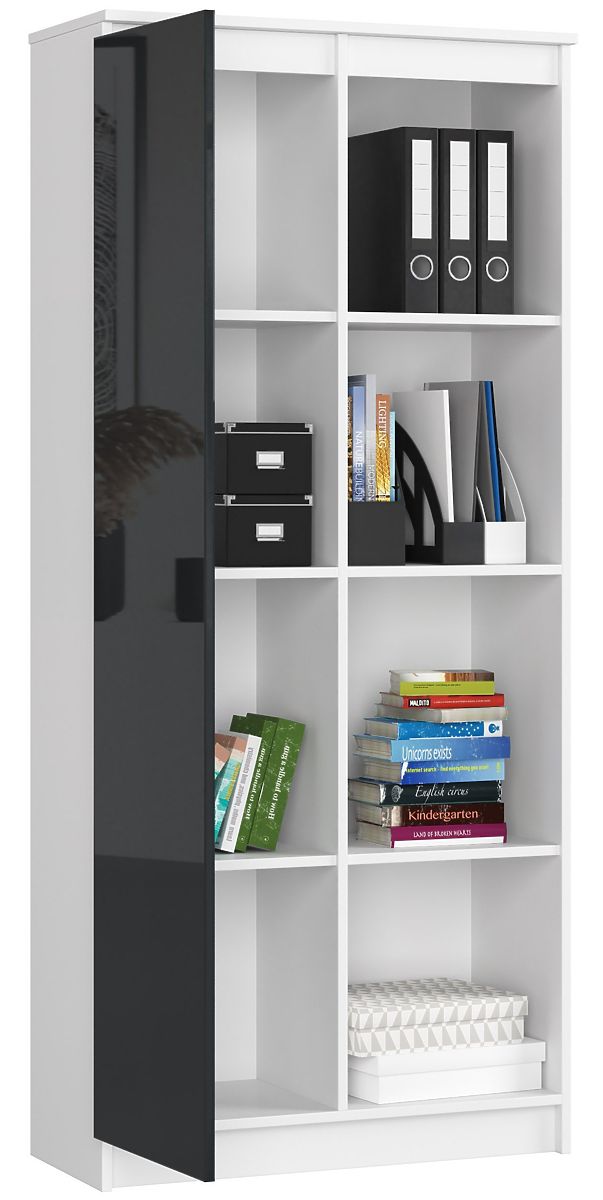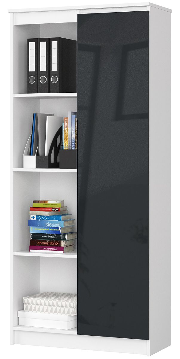 Lukafurniture.sk » Nábytok / Regály / KANCELÁRSKY REGÁL R 80 cm CLP 1 DVIERKA 4 POLICE BIELY / GRAFIT LESK