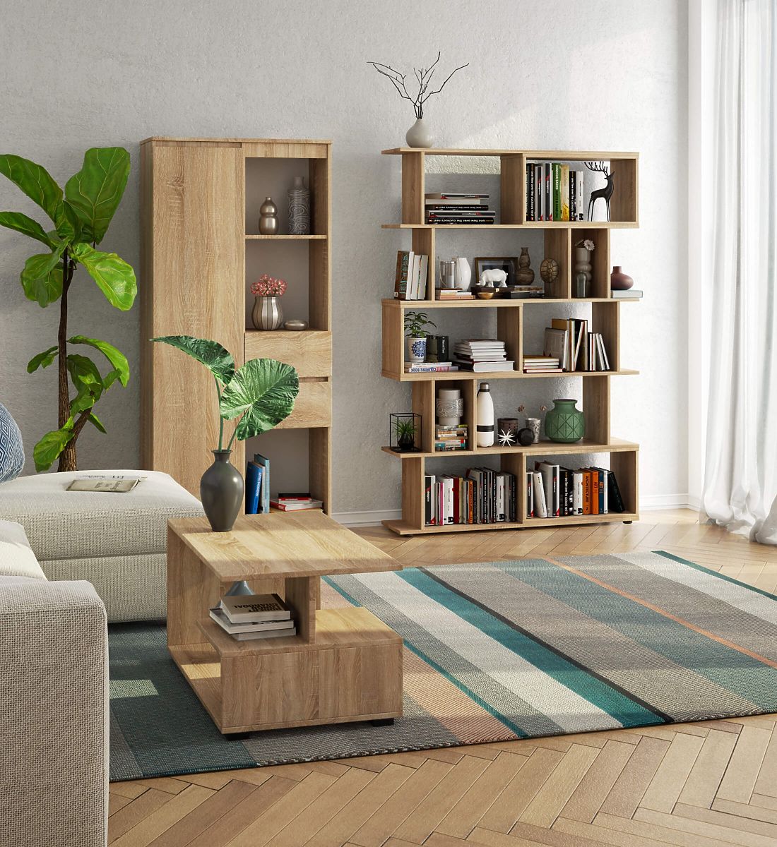 - elegantný vzhľad: regál sa vyznačuje jednoduchou formou, je v štýlovej farbe dub sonoma,