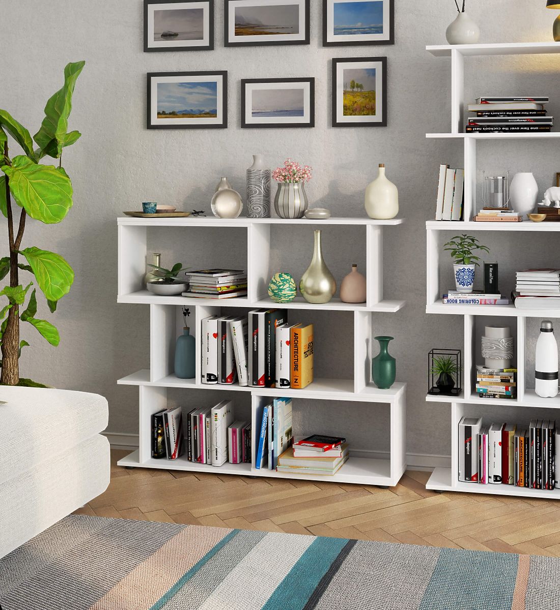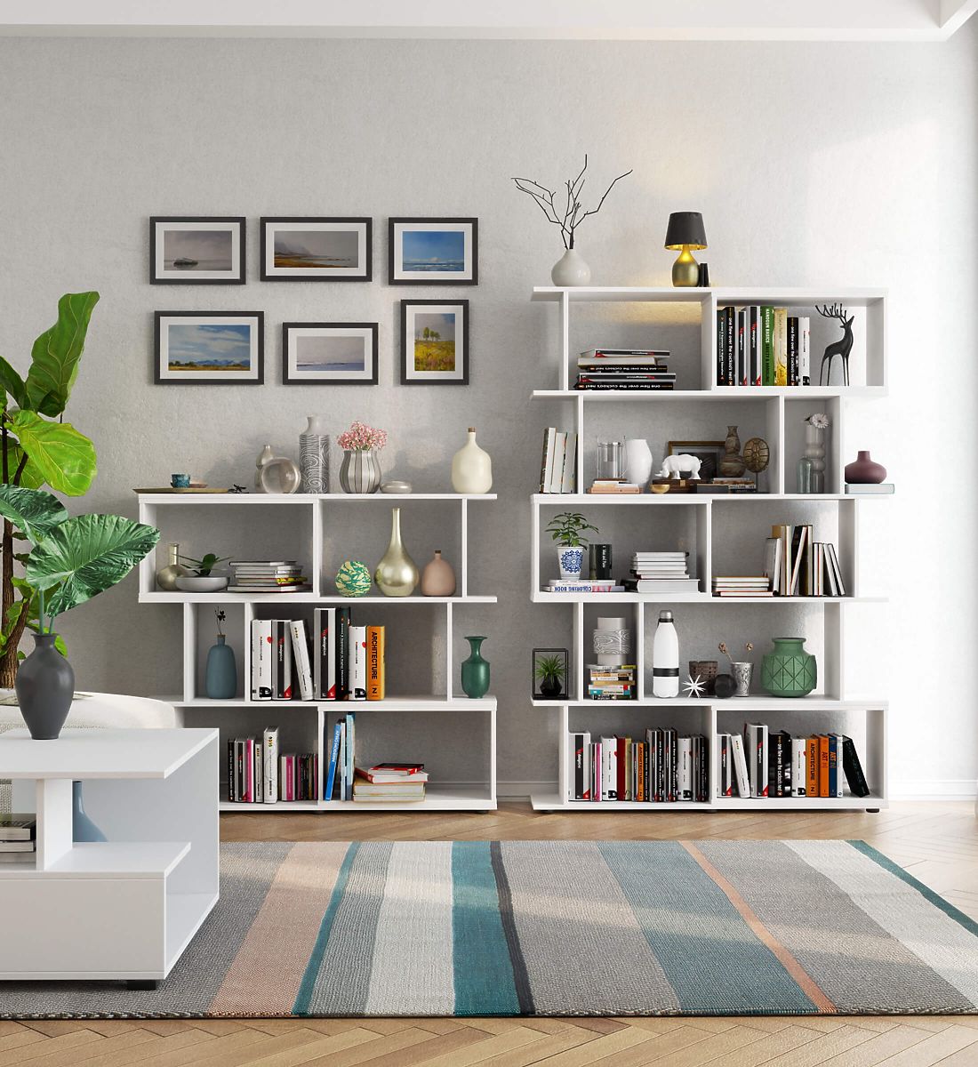 - elegantný vzhľad: regál sa vyznačuje jednoduchou formou, je v štýlovej bielej farbe,