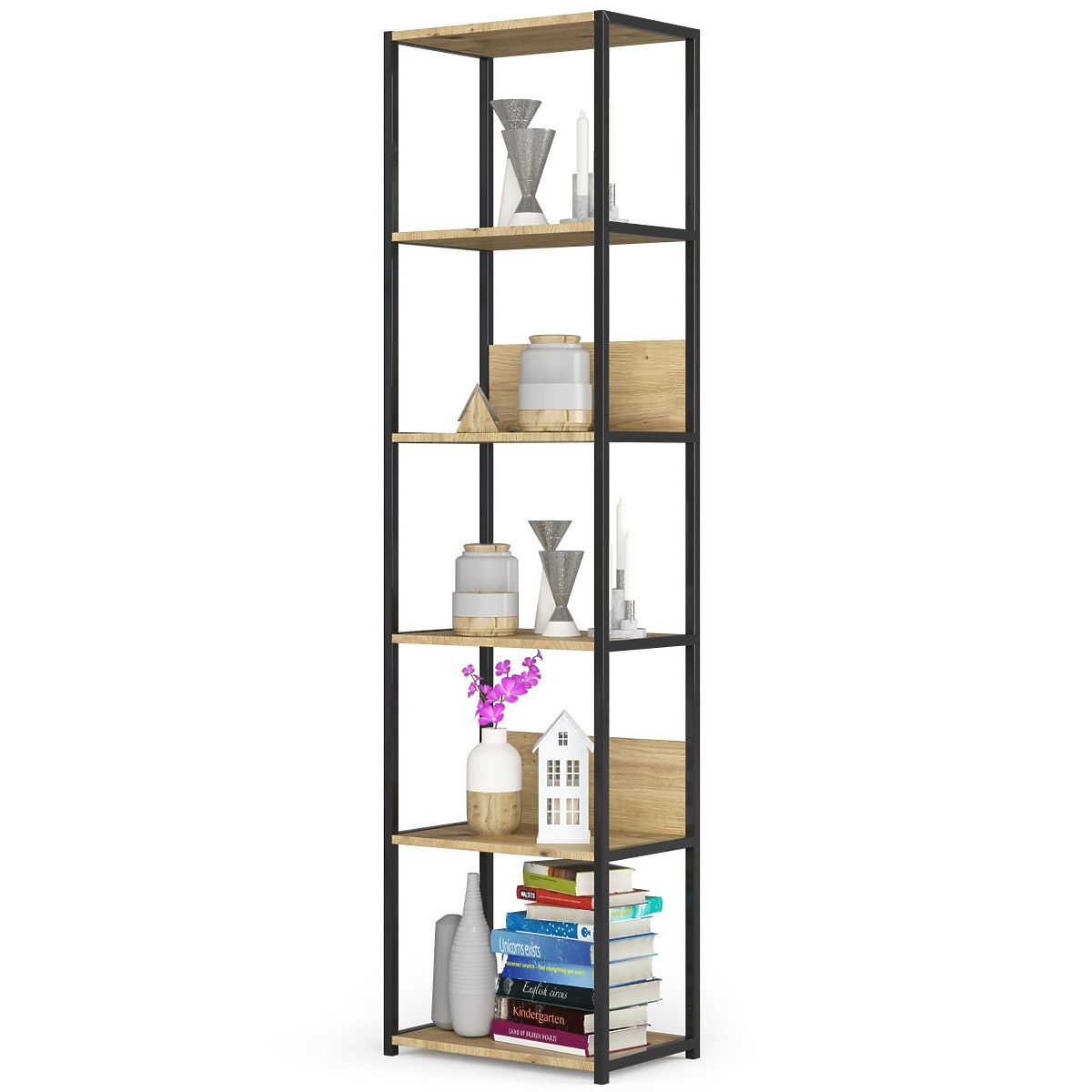 Kovový loftový regál je praktický a moderný nábytok, ktorý sa hodí ako do obývacej izby, tak do kancelárie. Regál s čiernym kovovým rámom a 6 policami v farbe Dub Artisan. Police regálu sú vyrobené z laminovanej dosky o hrúbke 16 mm. Je to odolný a pevný materiál, ktorý sa vyznačuje vysokou odolnosťou voči oderu. Hrany sú dodatočne chránené ABS hranou, vďaka čomu bude nábytok stále vyzerať dobre, aj pri veľmi intenzívnom každodennom používaní. Regál je vybavený 6 policami, na ktoré môžete umiestniť predmety, ktoré chcete vystaviť alebo mať jednoducho po ruke. Celkovo pôsobí veľmi štýlovo a moderne.