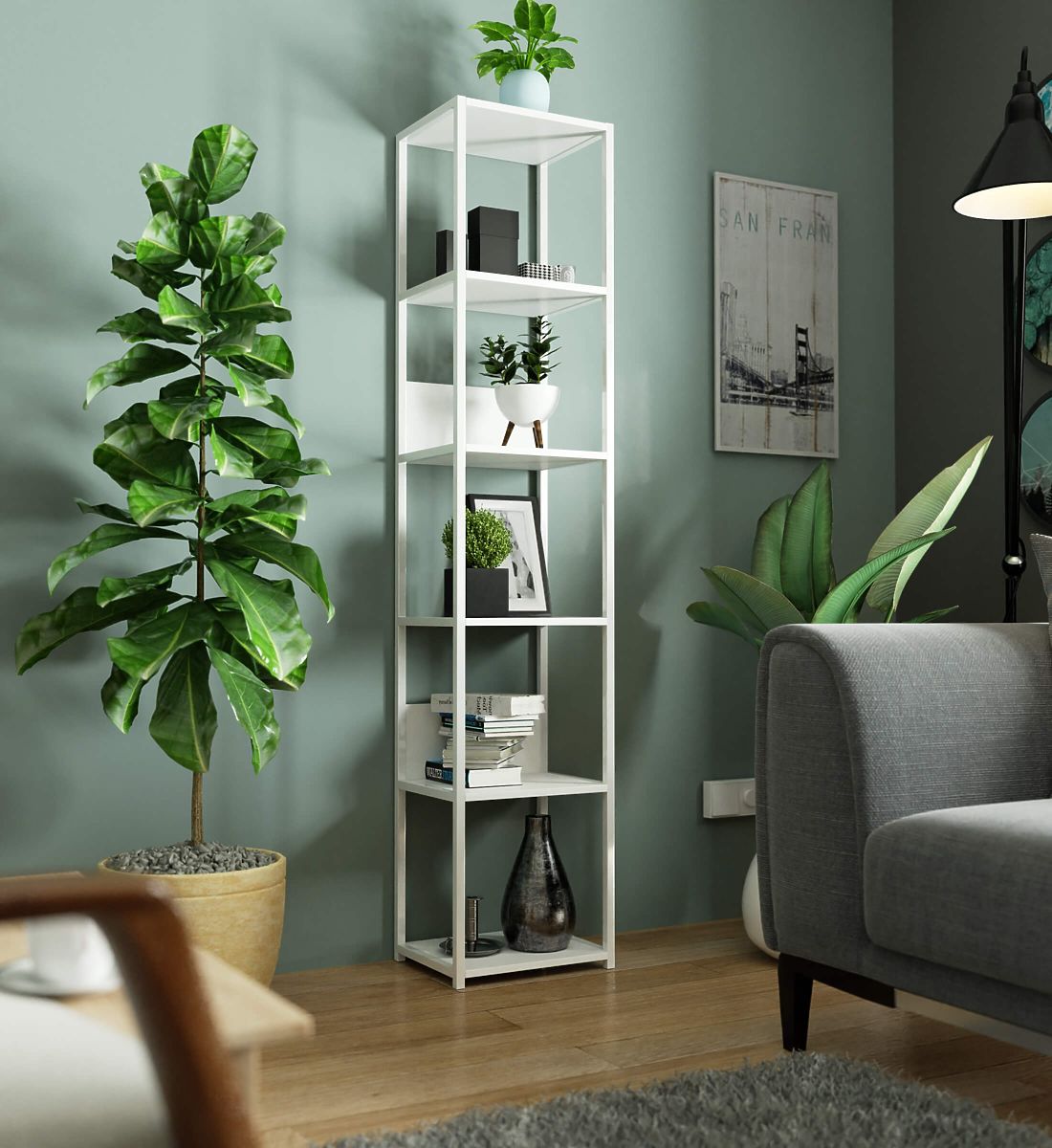 Kovový loftový regál je praktický a moderný nábytok, ktorý sa hodí ako do obývacej izby, tak do kancelárie. Regál s kovovým bielym rámom a 6 policami v bielej farbe. Police regálu sú vyrobené z laminovanej dosky o hrúbke 16 mm. Je to trvanlivý a odolný materiál, ktorý sa vyznačuje vysokou odolnosťou proti oderu. Hrany sú dodatočne chránené ABS hranou, vďaka čomu bude nábytok stále vyzerať dobre, aj pri veľmi intenzívnom každodennom používaní. Regál je vybavený 6 policami, na ktoré možno umiestniť predmety, ktoré chceme vystaviť alebo mať po ruke. Celkovo pôsobí veľmi štýlovo a moderne.