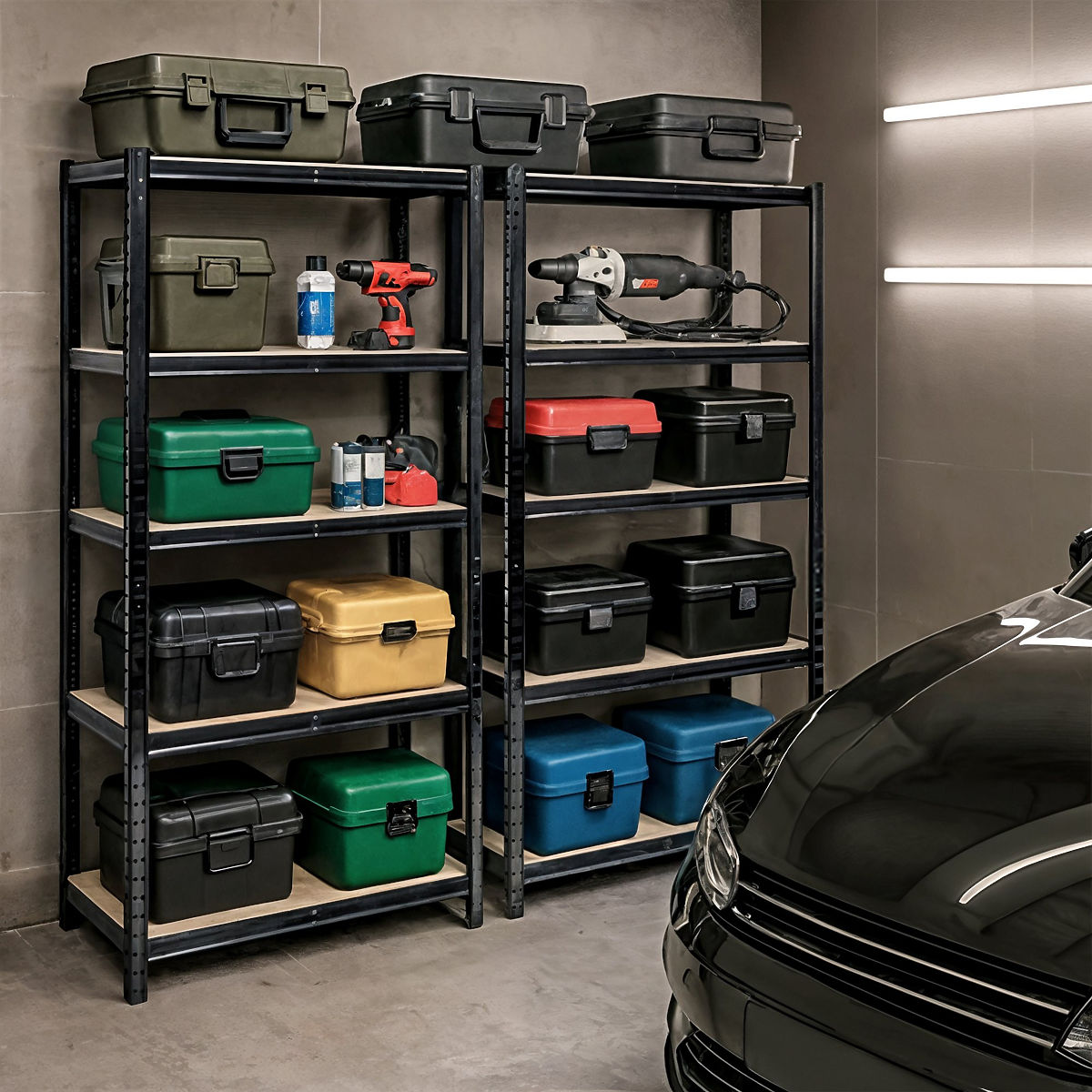 Hĺbka - 40 cmKovový regál ideálny na skladovanie. Vhodný do garáže, dielne, pivničnej kóje aj do hospodárskych miestností. Regál v čiernej farbe so šírkou 90 cm a výškou 180 cm. Police vyrobené z odolnej MDF dosky. Nosnosť na policu je 175 kg.