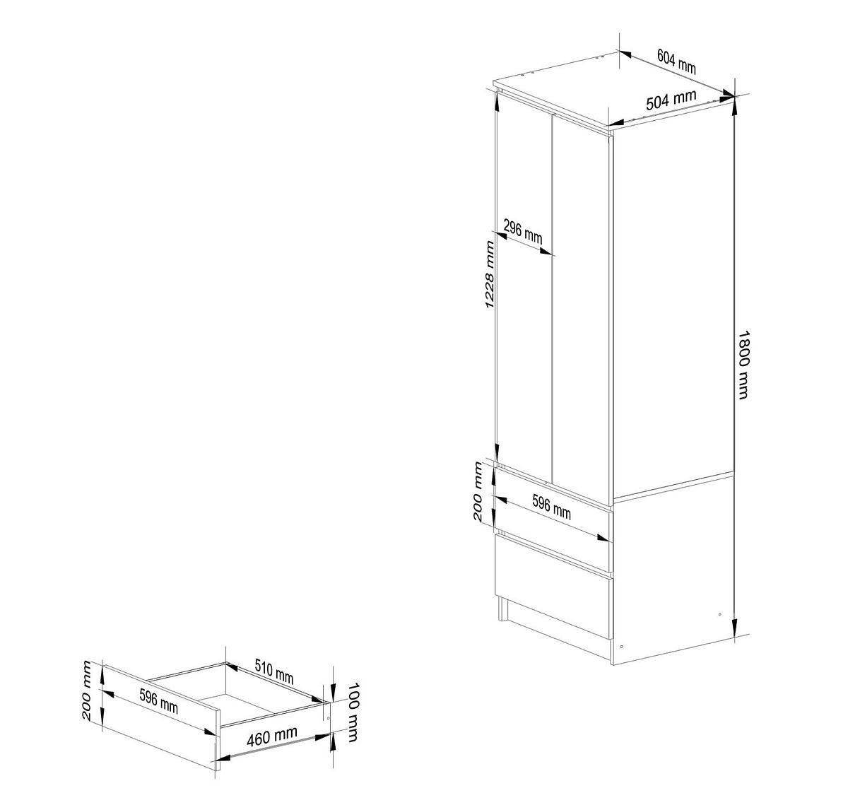 SKRIŇA STAR K60 2 DVERÍ, 2 ZÁSUVKY Vyrobená z laminovanej dosky 16 mm odolnej proti oderu.