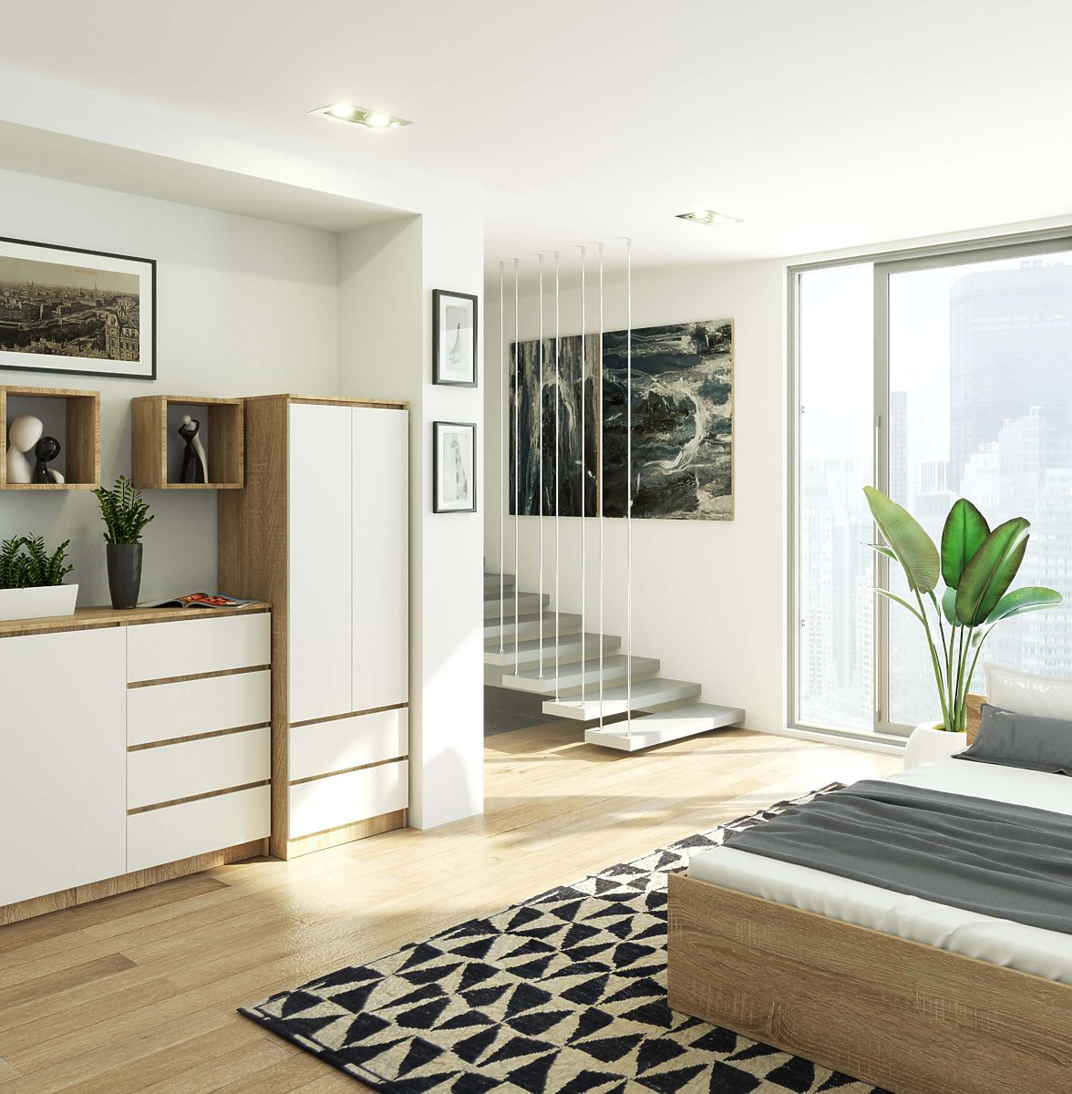 Mix farieb korpus sonoma, čelá biele Vyrobená z laminovanej dosky 16mm odolnej voči oderu.