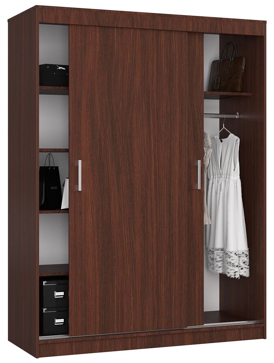 Posuvná skriňa 150 cm CLP vo farbe mono wenge je ideálnou voľbou pre milovníkov klasiky. Nábytok je elegantný a jednoduchý vo forme, ideálne sa hodí do spálne, obývacej izby alebo šatne. Skvele zapadne do aranžmánov kladúcich dôraz na eleganciu. Nábytok je funkčný a odolný, zároveň uľahčí udržiavanie poriadku v oblečení a textíliách. Je určený pre 2 osoby.
