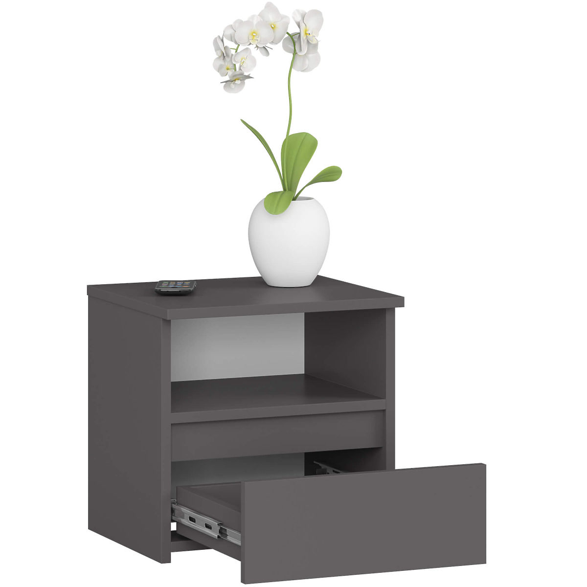 Nočné stolíky sú obľúbeným typom nábytku, ktorý sa umiestňuje vedľa postele. Na jeho doske sa najčastejšie nachádza lampička, zatiaľ čo vo vnútri sú predmety uľahčujúce odpočinok a spánok. Osoby, ktoré hľadajú elegantnú komodu, by mali venovať pozornosť nočnému stolíku CL1 40 cm v farbe grafitová sivá. Bude sa krásne vynímať v každej spálni. Môže byť tiež umiestnený v detskej izbe.