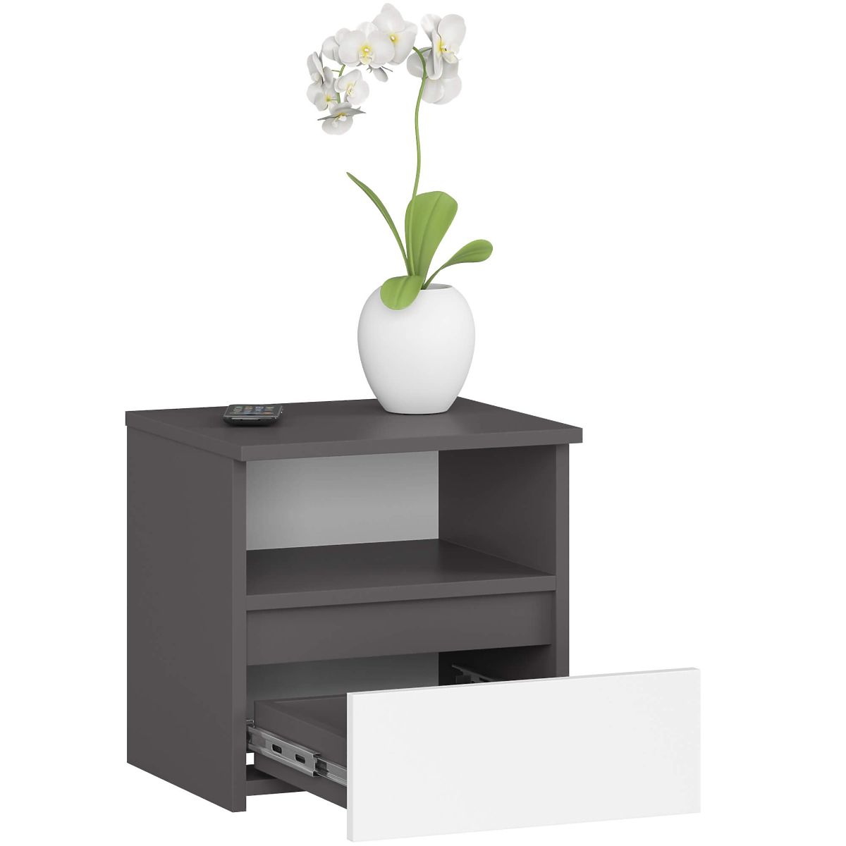 Nočný stolík CL1 v grafitovej šedej a bielej, ideálny do spálne. .. viac
