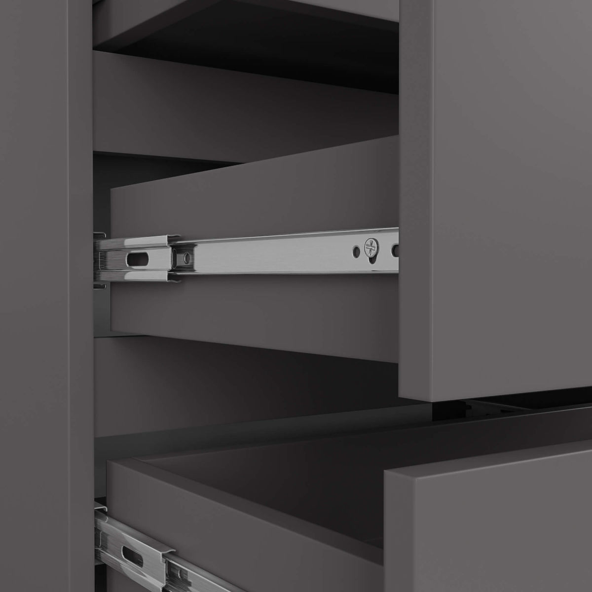 - Zásuvky sa pohybujú na kovových guľôčkových pojazdoch