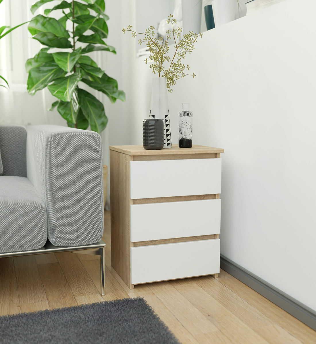 Nočné stolíky sú obľúbeným typom nábytku, ktorý sa umiestňuje vedľa postele. Na jeho doske sa najčastejšie nachádza lampička, zatiaľ čo vo vnútri sú predmety uľahčujúce odpočinok a spánok. Osoby, ktoré hľadajú elegantnú komodu, by mali venovať pozornosť nočnému stolíku CL3 40 cm v farbe dub sonoma s bielymi čelami. Bude sa krásne vynímať v každej spálni. Môže byť tiež umiestnená do detskej izby.