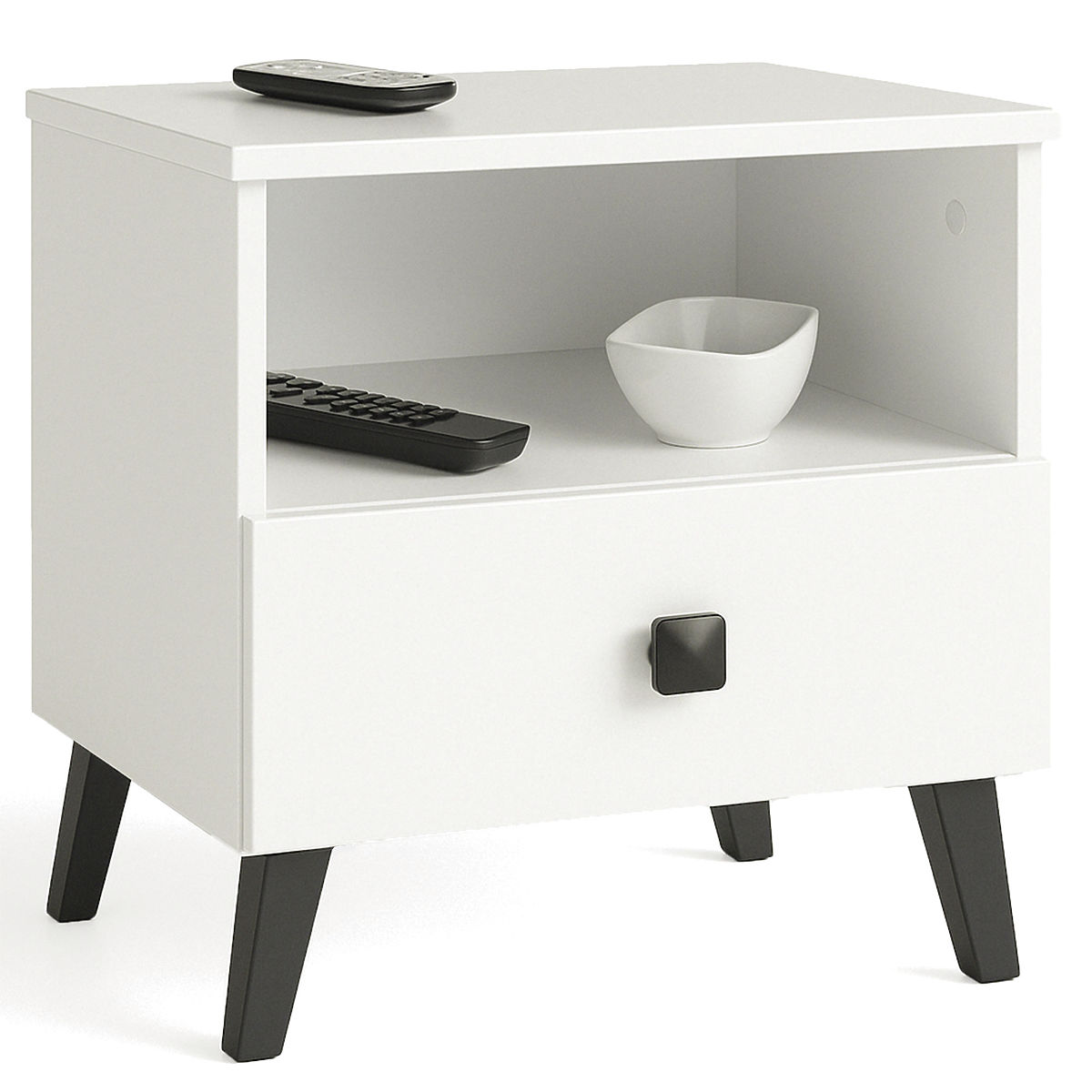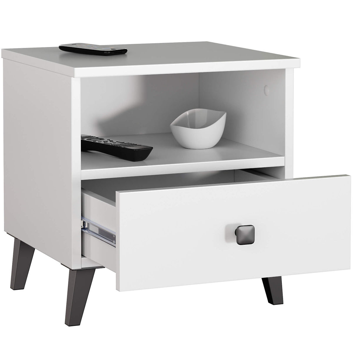 NOČNÝ STOLÍK MOBI 1 ZÁSUVKA 1 NIKA BIELA ČIERNA