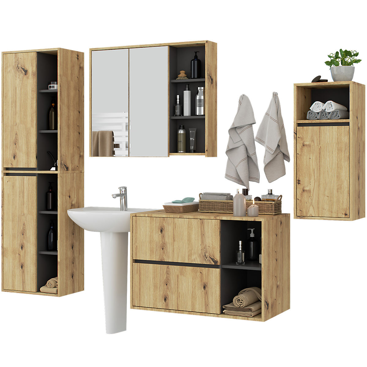 Lukahome.sk » Kúpeľňa a WC / Kúpeľňové zostavy / SADA ZÁVESNÉHO KÚPEĽŇOVÉHO NÁBYTKU VAMI DUB ARTISAN / GRAFIT ŠEDÝ