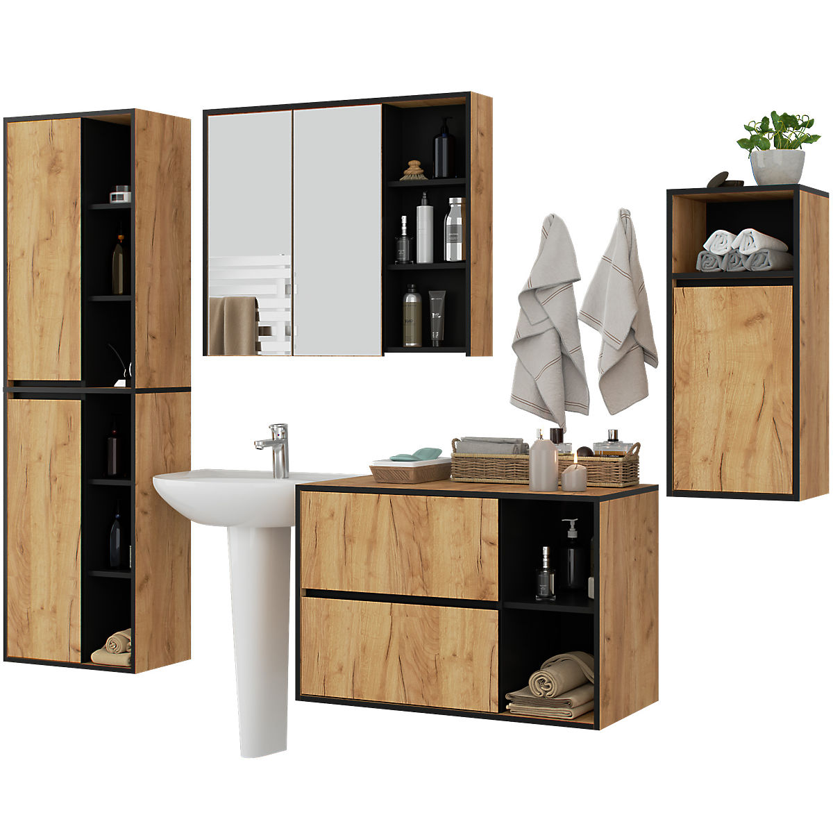 Lukahome.sk » Kúpeľňa a WC / Kúpeľňové zostavy / SADA ZÁVESNÉHO KÚPEĽŇOVÉHO NÁBYTKU VAMI DUB CRAFT / ČIERNA