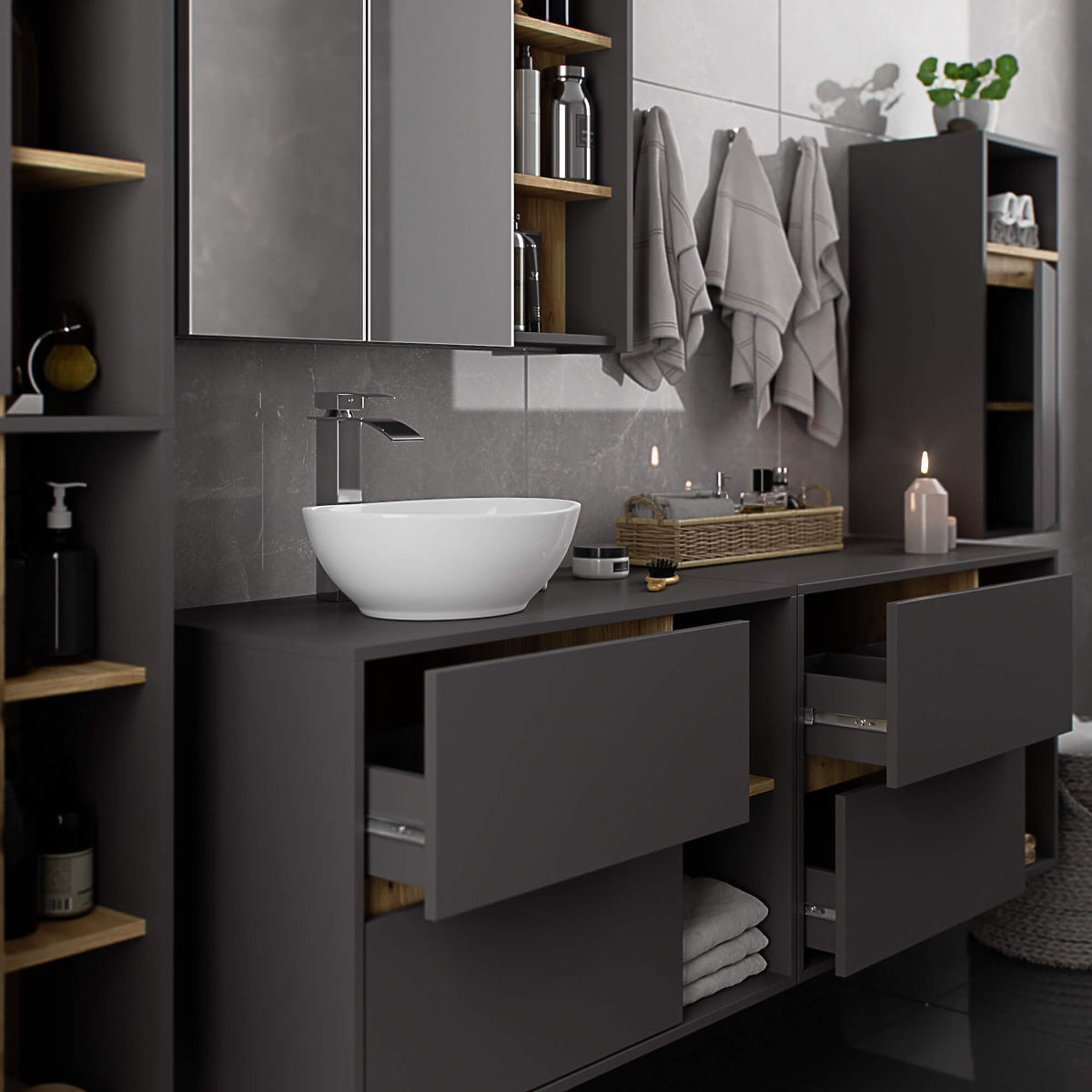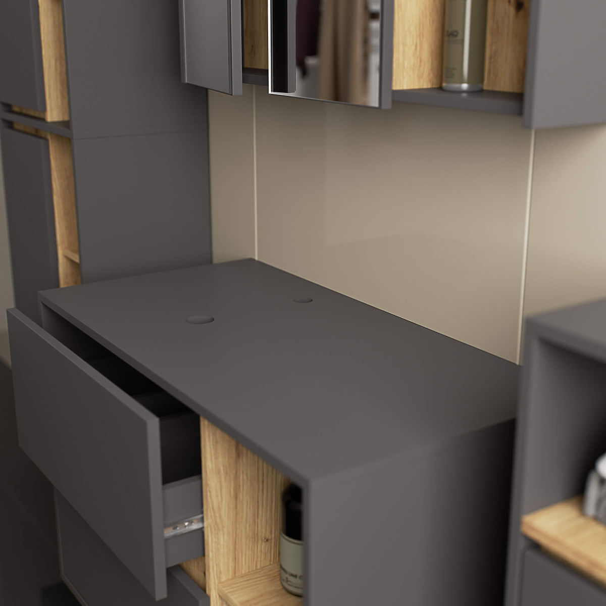 Lukahome.sk » Kúpeľňa a WC / Kúpeľňové skrinky / KÚPEĽŇOVÁ SKRINKA POD UMÝVADLO S OTVORMI VAMI W90 UM 2SZ 2P GRAFITOVÁ ŠEDÁ / DUB ARTISAN