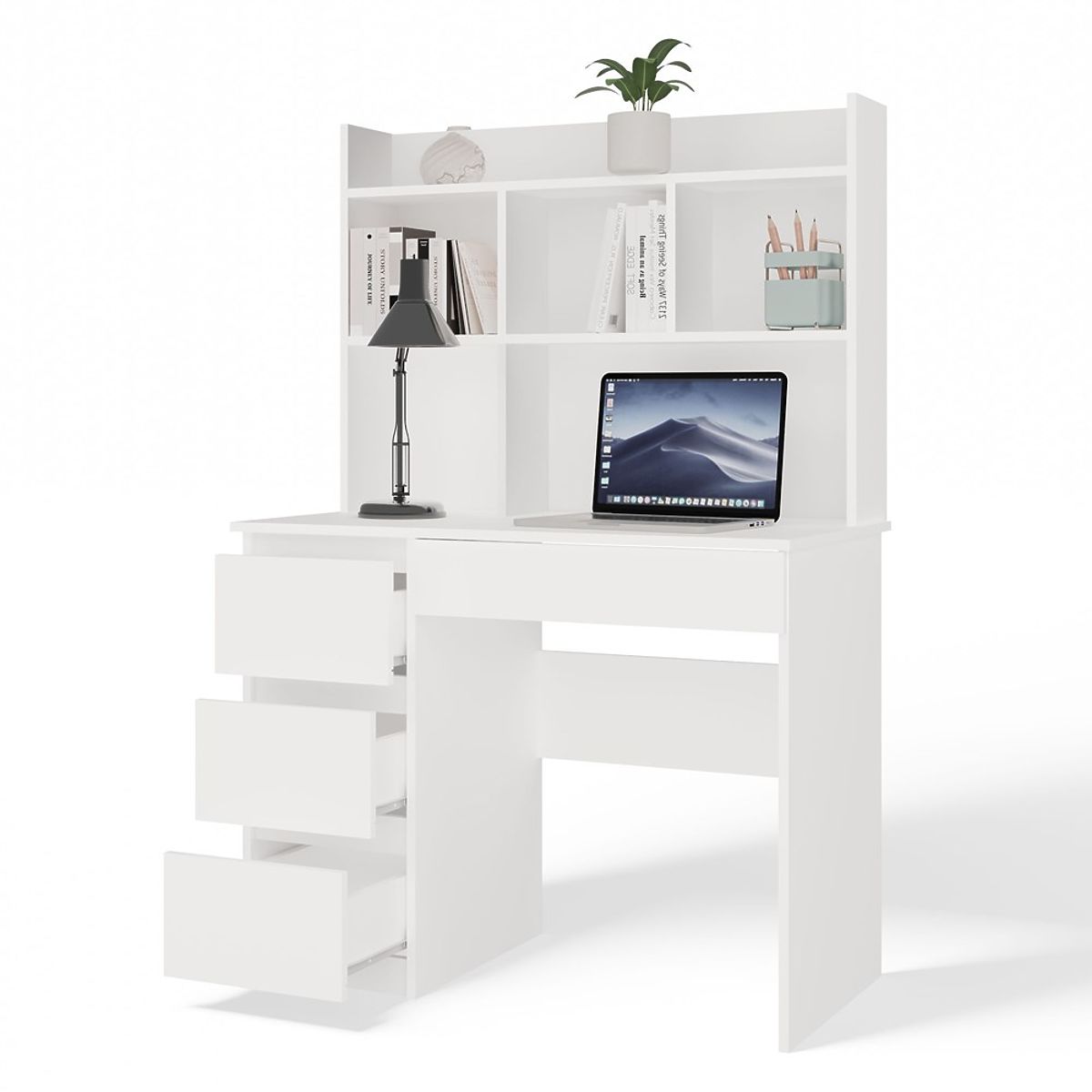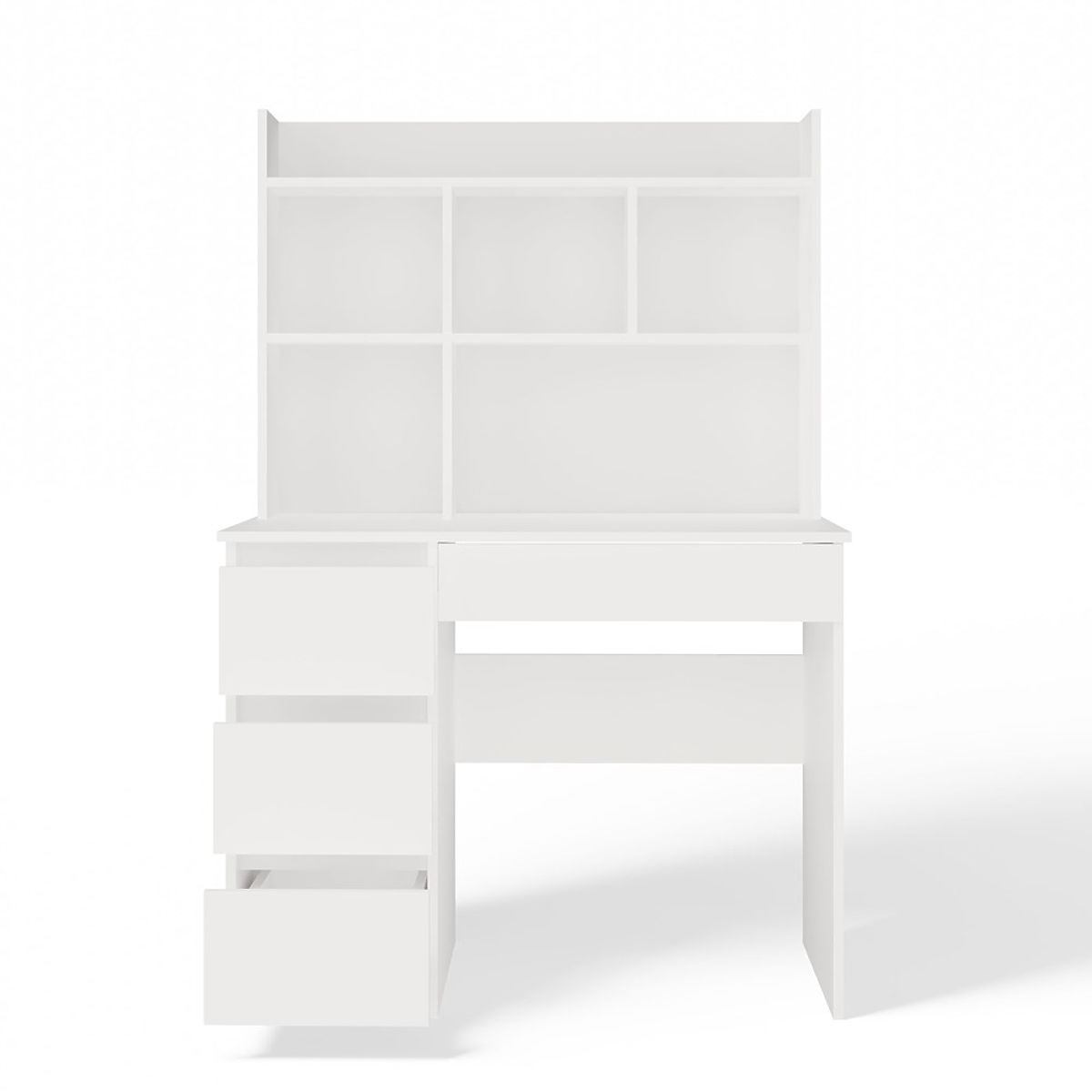 Písací stôl MIJAS Ľavý S Nadstavcom Biely Mat 4 Zásuvky 4 Poličky Do Kancelárie Izby