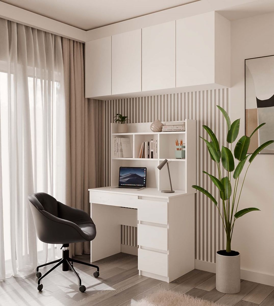 Moderný dizajn, matná biela farba a praktické usporiadanie úložného priestoru robia z tohto nábytku ideálny doplnok do mládežníckej, detskej izby alebo domácej kancelárie.