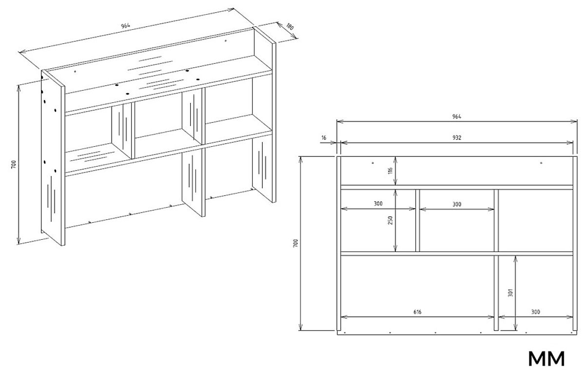 Nadstavec s otvorenými poličkami – ideálny na knihy, zošity, dekorácie alebo príslušenstvo