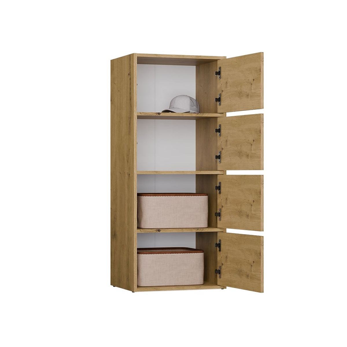 Vďaka priestranným policiam skrytým za hladkými dverami poskytuje komoda množstvo úložného priestoru a uľahčuje udržiavanie poriadku v každom priestore.