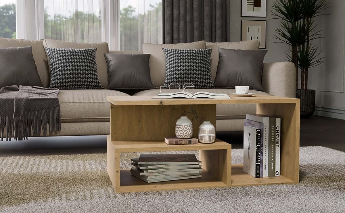 Kávový stolík z pevnej laminovanej dosky s prídavnou policou. .. viac