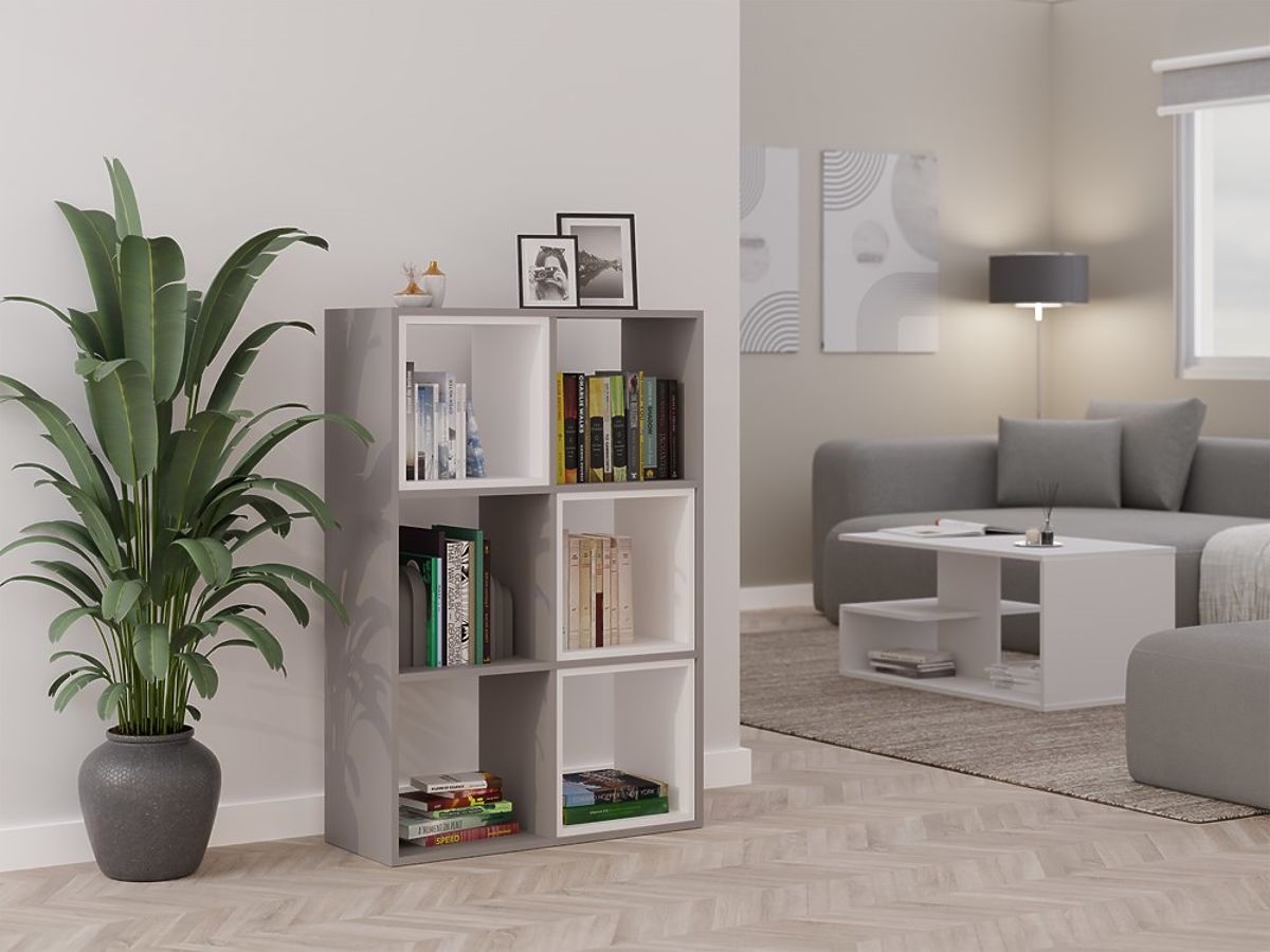 Regál MALAX 2X3 spája moderný dizajn a funkčnosť, dokonale sa hodí do rôznych interiérov. Jeho jednoduchosť a elegancia z neho robia nielen praktický, ale aj estetický prvok vybavenia.