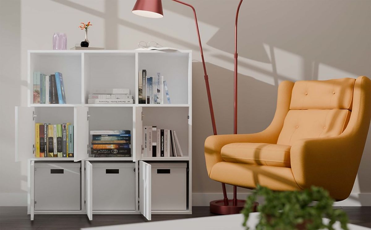 9 rovnakých komôr – ideálnych pre knihy, krabice, dokumenty, hračky alebo dekorácie