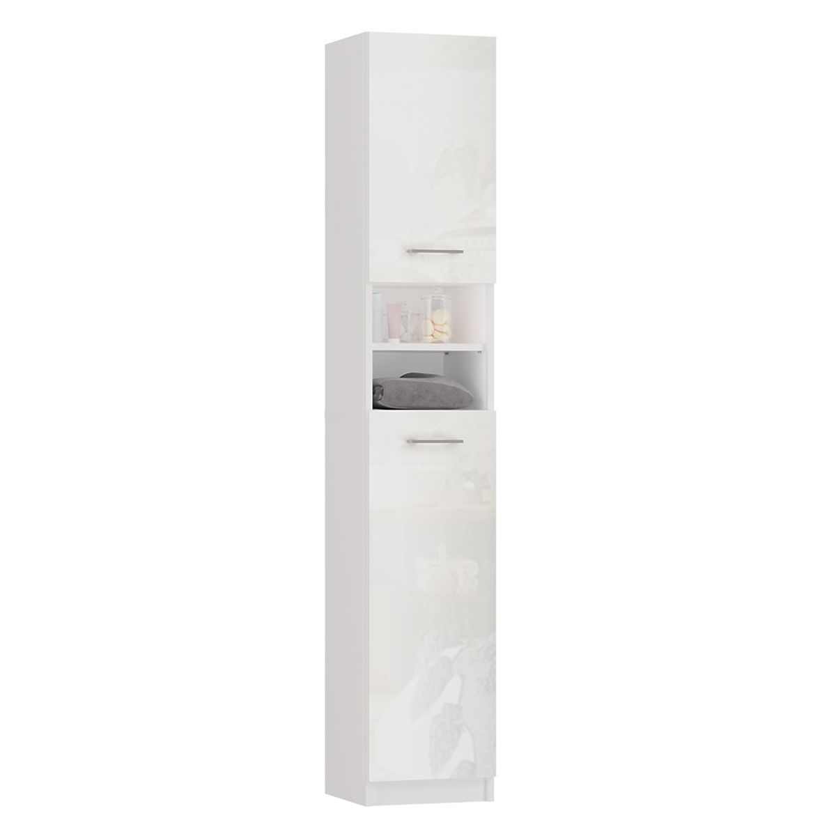 Moderná kúpeľňová skrinka s bielym leskom a univerzálnym vzhľadom. .. viac