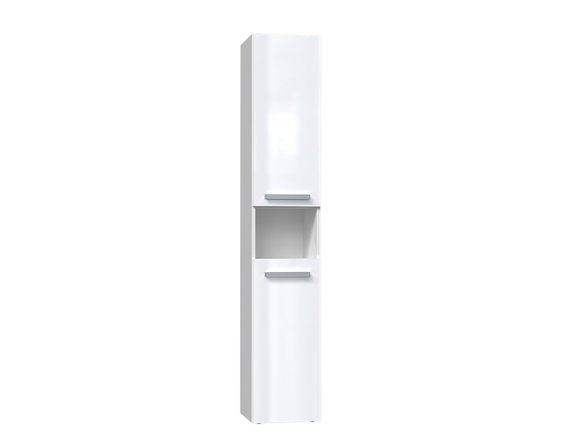 Praktická kúpeľňová skrinka s bielym leskom a krátkymi dverami. .. viac