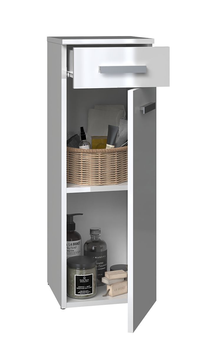 Kúpeľňová skrinka s praktickou zásuvkou a jednými dverami. .. viac