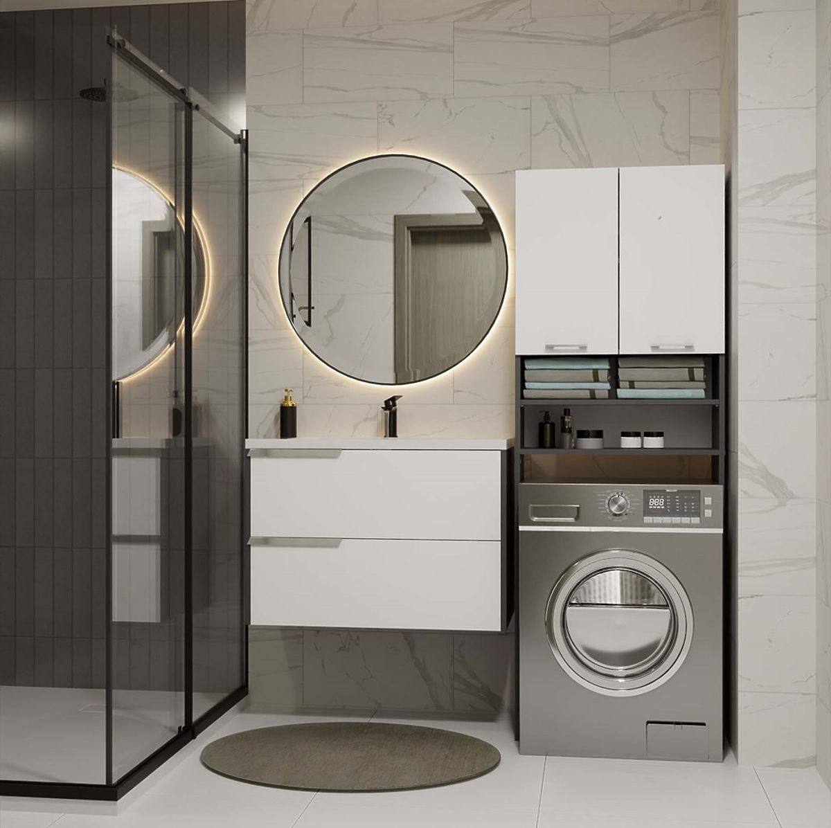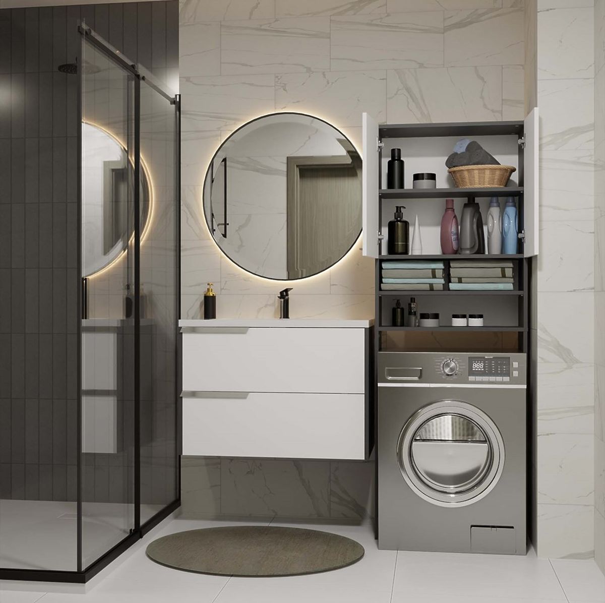 Kúpeľňová Skrinka nad Práčku POLA DK ANTRACIT BIELA Regál Stĺpik 180X64X30