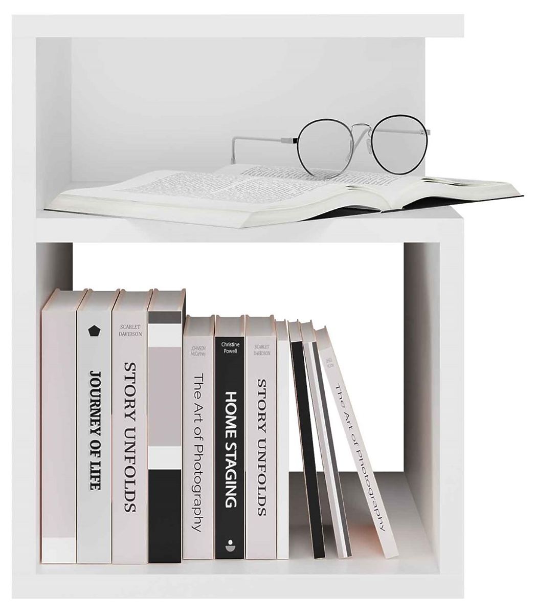 Moderný biely nočný stolík s minimalistickým dizajnom. .. viac