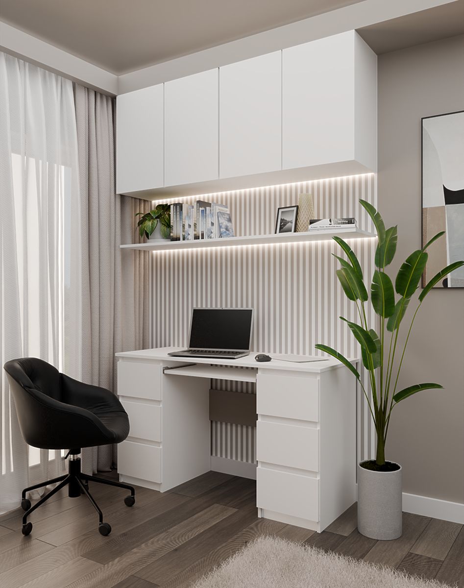 Písací stôl KUBA je praktický a estetický nábytok navrhnutý pre každodenné použitie v domácnosti, kancelárii, dielni alebo študentskej izbe. Moderné farebné prevedenie a minimalistická forma zabezpečujú, že sa skvele hodí ako do moderných, tak klasických interiérov.