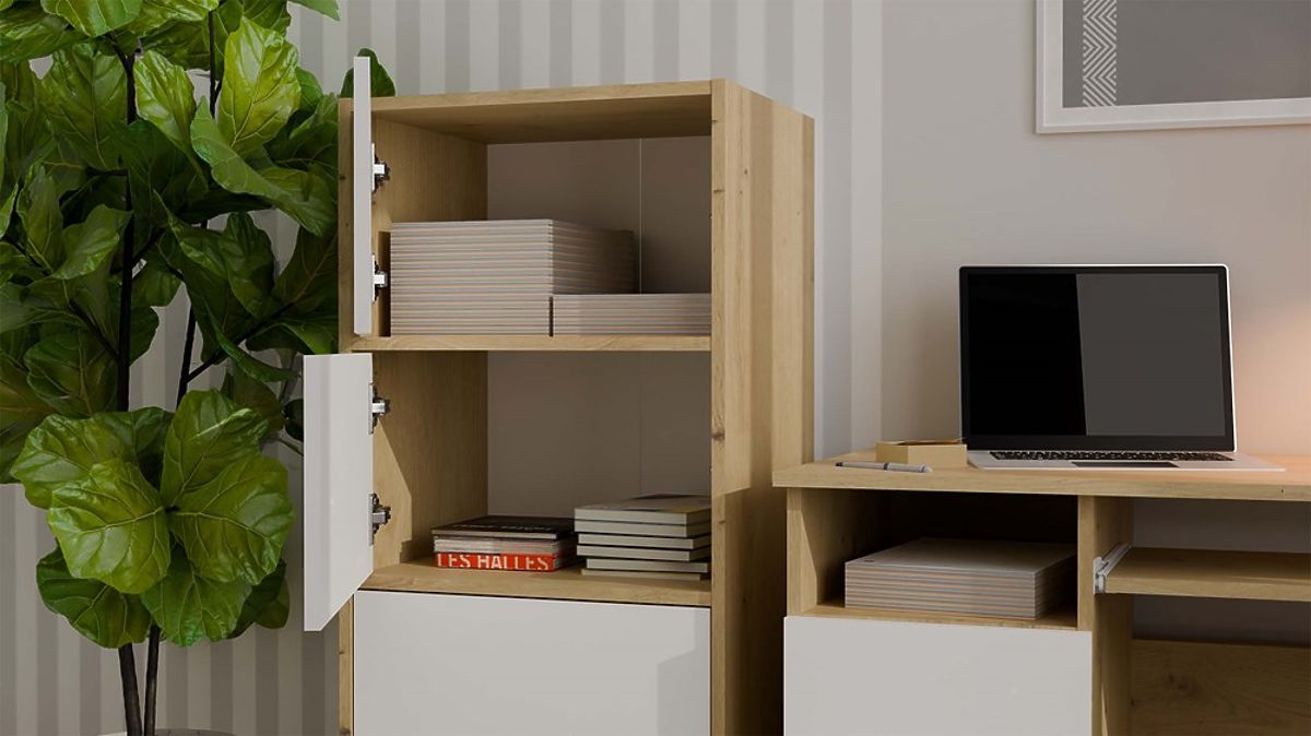 Vďaka priestranným policiam skrytým za hladkými dverami, komoda poskytuje veľa úložného priestoru a uľahčuje udržiavanie poriadku v každom priestore.