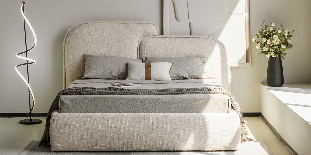 Lukafurniture.sk » Postele / Manželské postele / Postele 160x200 / Čalúnená posteľ Nestia 160x200 cm, s roštom a úložným priestorom, svetlo béžová, zaoblená